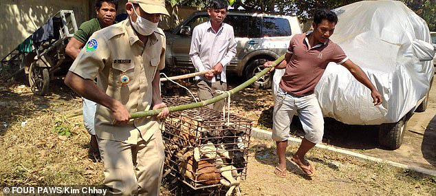 Le rapport indique également que le conducteur du minivan a été arrêté et que les chiens sont maintenant pris en charge par les travailleurs de l’association caritative Four Paws et les associations caritatives locales Paw Patrol Cambodia et Animal Rescue Cambodia.