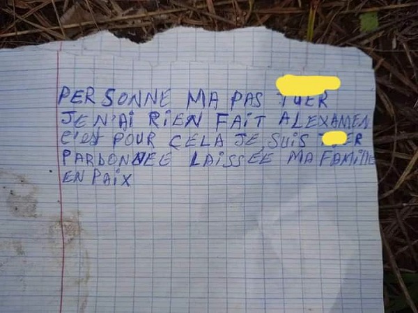 Mécontent d’être empêché de continuer la composition, il se donne la mort par pendaison derrière la clôture du lycée en laissant un message écrit sur deux bouts de papier.