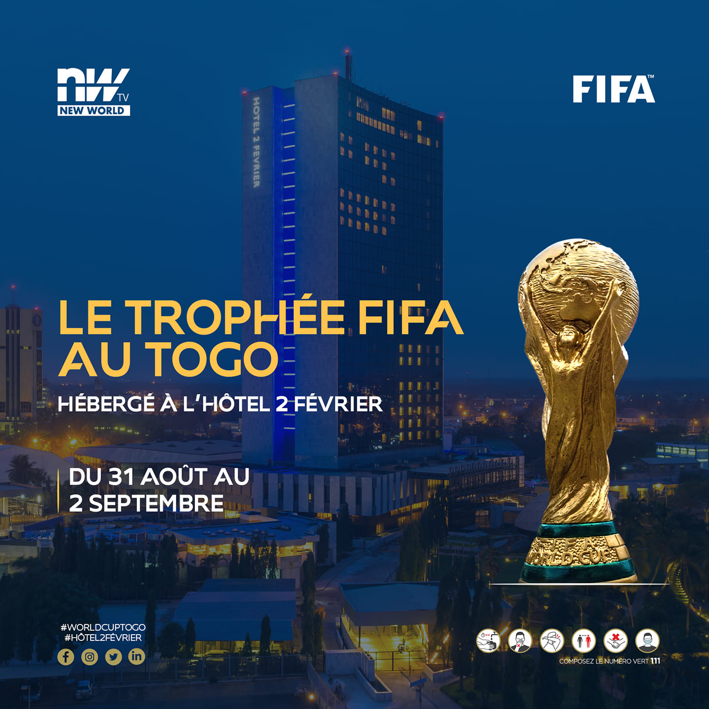 Le trophée de la FIFA est au Togo. Véritable symbole de victoire, sacre absolu, le célèbre trophée est en tournée au Togo et exposé à partir du mardi 31 août au 2 septembre 2021 dans les espaces de l’hôtel 2 Février.