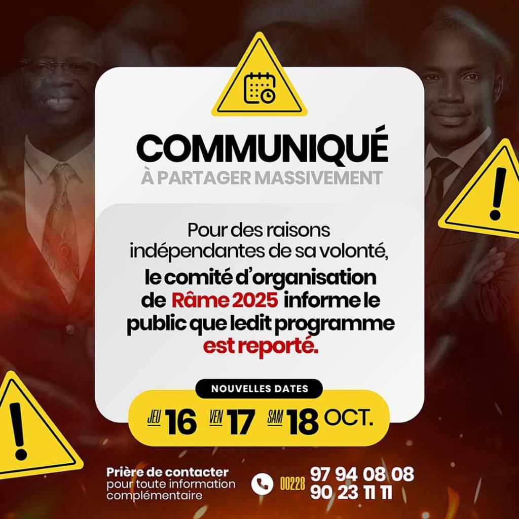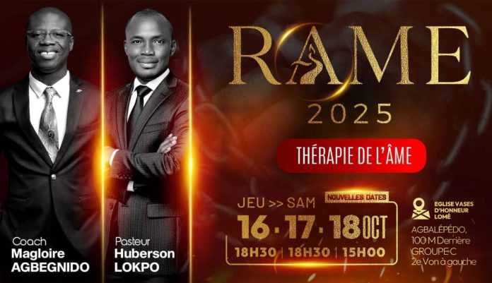 Un grand rendez-vous spirituel de guérison attend les populations de Lomé et ses environs. Du 16 au 18 octobre 2025, l’Église Vases d’Honneur – Assemblée Résurrection, située à Agbalépédo, organise la première édition du programme RÂME, une rencontre dédiée à la guérison intérieure et à la restauration de l’âme.