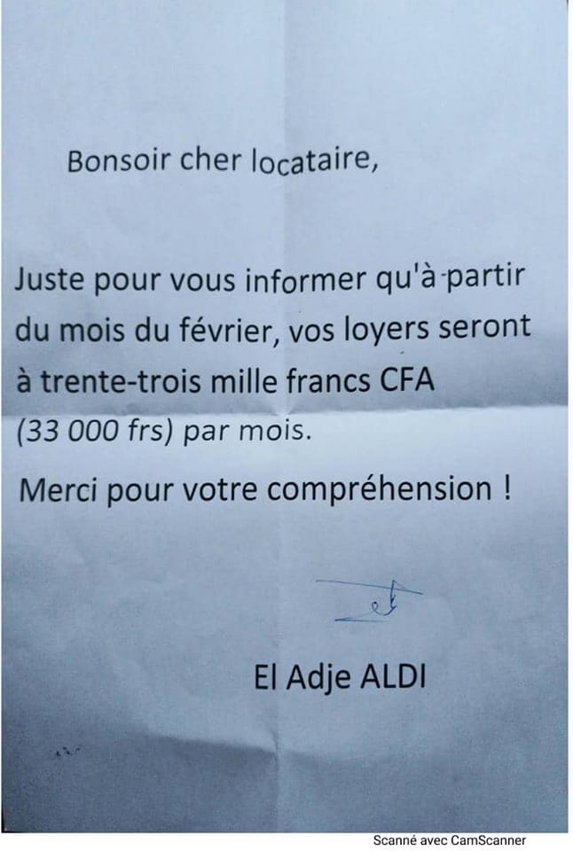 Certains maisoniers augmentent déjà les loyers. Une image publiée par le journaliste Ferdinand Ayité en est la preuve. « Voilà ce qu’un ami a trouvé ce soir de retour du boulot. Ainsi va le Togo », a commenté le journaliste.