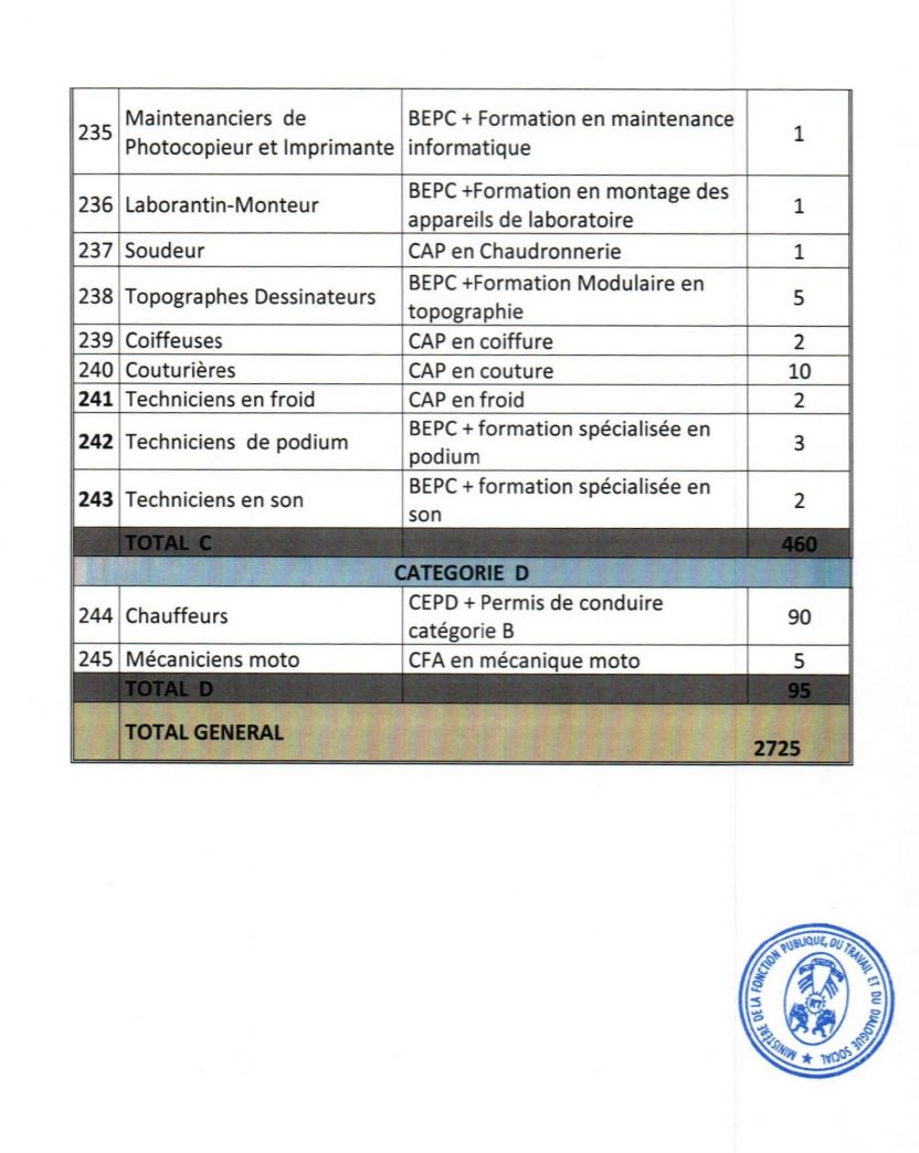 Les dossiers de candidature sont déposés au cabinet du ministère de la fonction publique, du travail et du dialogue social à Lomé, et dans les directions régionales du travail et des lois sociales, à Tsévié, Atakpamé, Sokodé, Kara et Dapaong à partir du 06 décembre 2021.