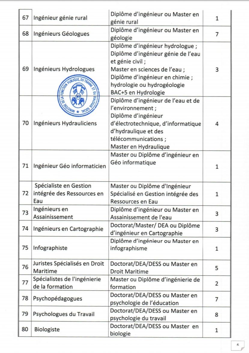 Les dossiers de candidature sont adressés à monsieur le ministre de la fonction publique, du travail et du dialogue social et comportent les pièces ci-après :