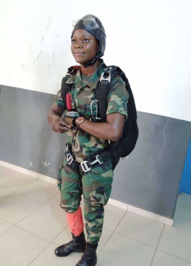1ère femme chuteur de l’armée togolaise, Kondi Julienne a séduit plus d’un. Le président Faure est resté sous le charme de la jeune dame qui a incorporé ce corps en 2019 et qui fait des exploits.