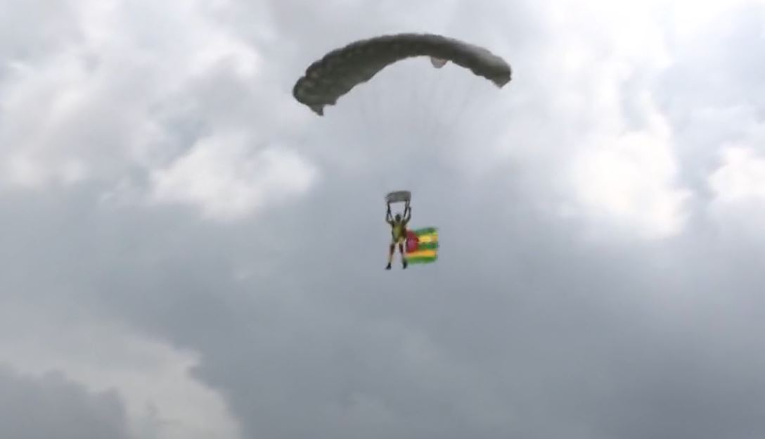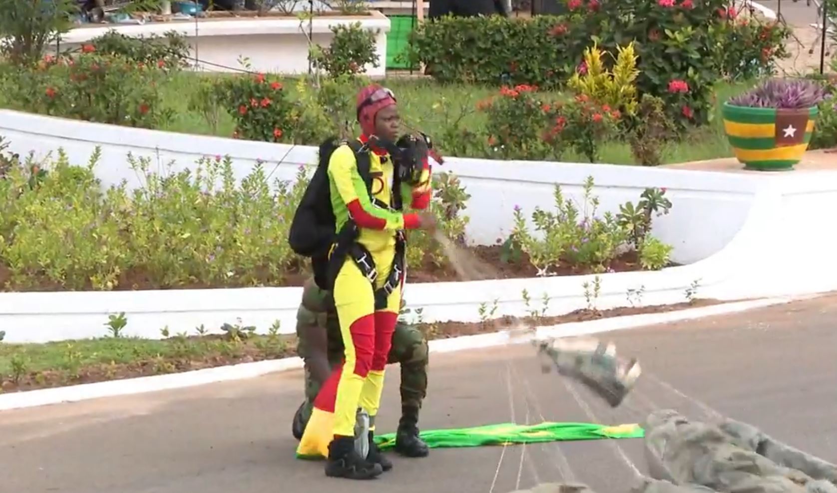 Avant le démarrage effectif de ce défilé, sept (7) parachutistes commandos parmi lesquels on note la présence de Kondi Julienne, ont démontré leur talent en saut parachutes.