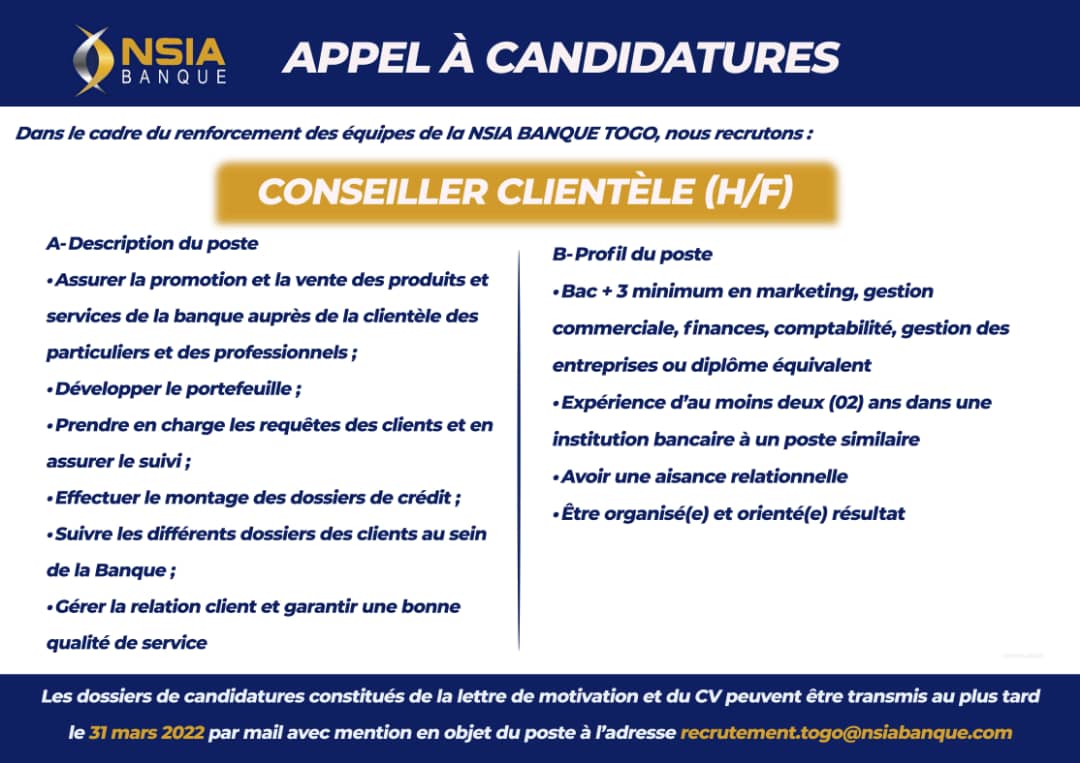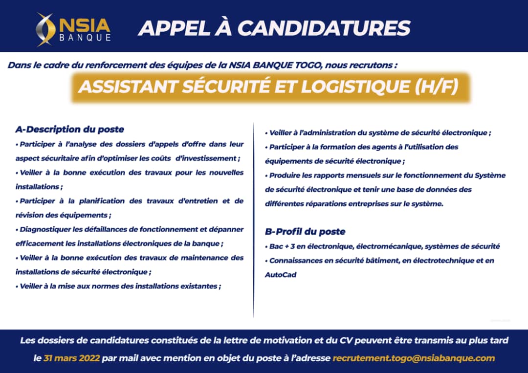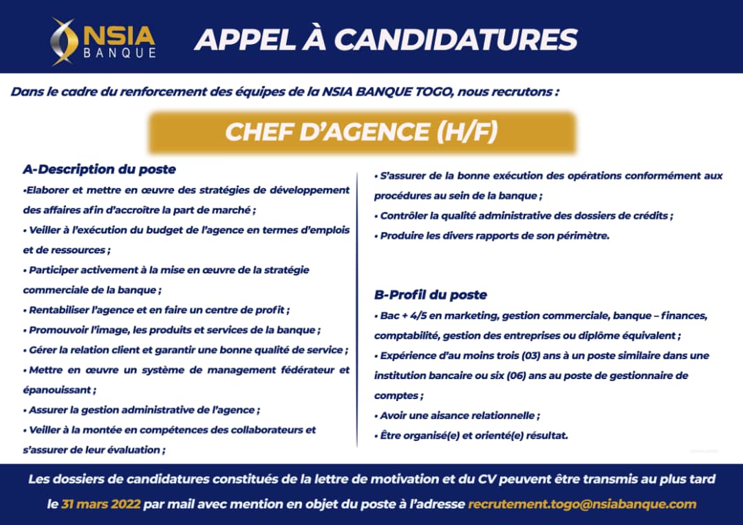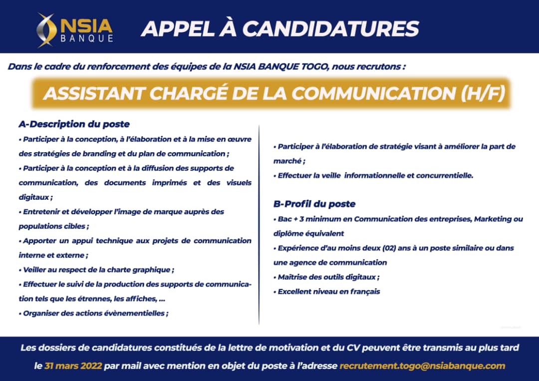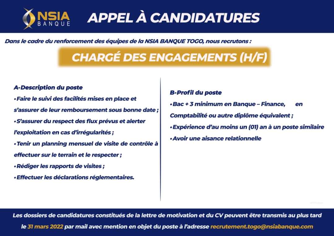 Prière adresser votre candidature (CV, Lettre de motivation avec prétention salariale) au plus tard le vendredi 18 mars 2022 à 17h à : recrutementnsia@groupensia.com en précisant en objet : Fiscaliste.